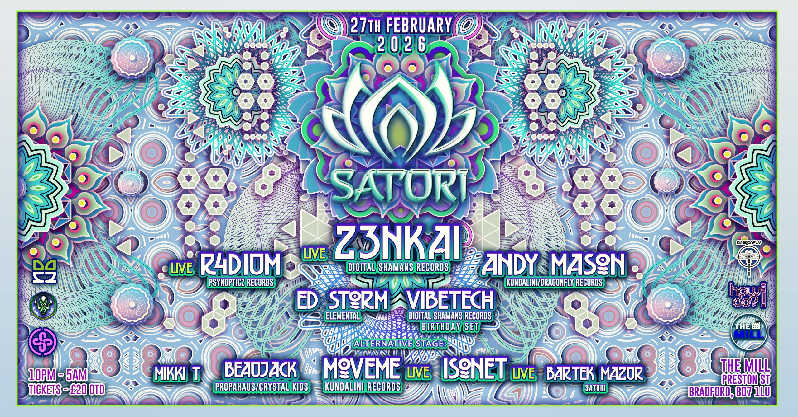 Started by two individuals BRUNO VIBETECH and HENRY GARDNER that became close friends while attending the psytrance events in the UK. On the car ride in between multiple events together, Satori was born with a focus on improving and implementing the best aspects of our own personal experiences from around the world and the UK. Sharing a serious passion for the progression of the events in the UK, similar morals and musical taste allows the duo to work so well together.